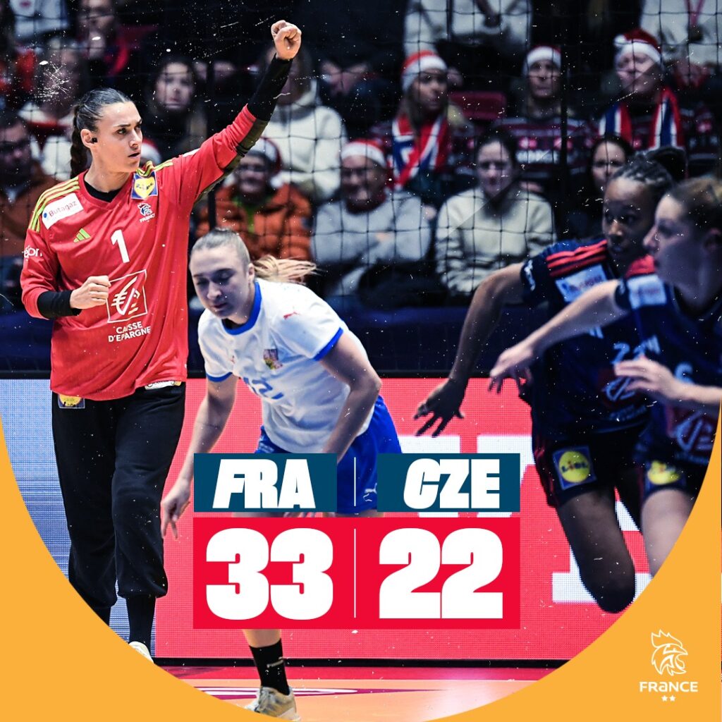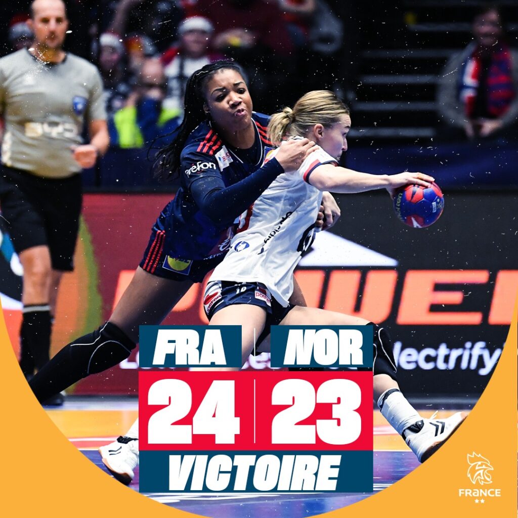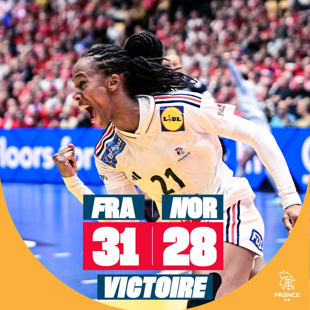 Dimanche 17 décembre 2023, à Herning, l’Équipe de France féminine est devenue championne du monde pour la troisième fois de son histoire en dominant la Norvège en finale (31-28) !