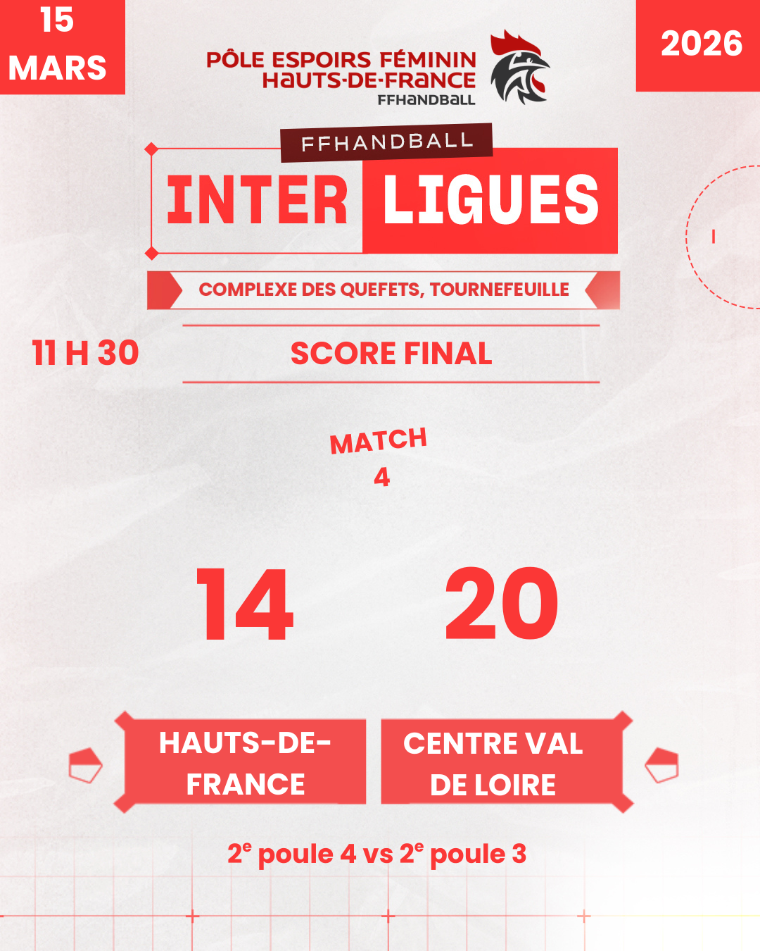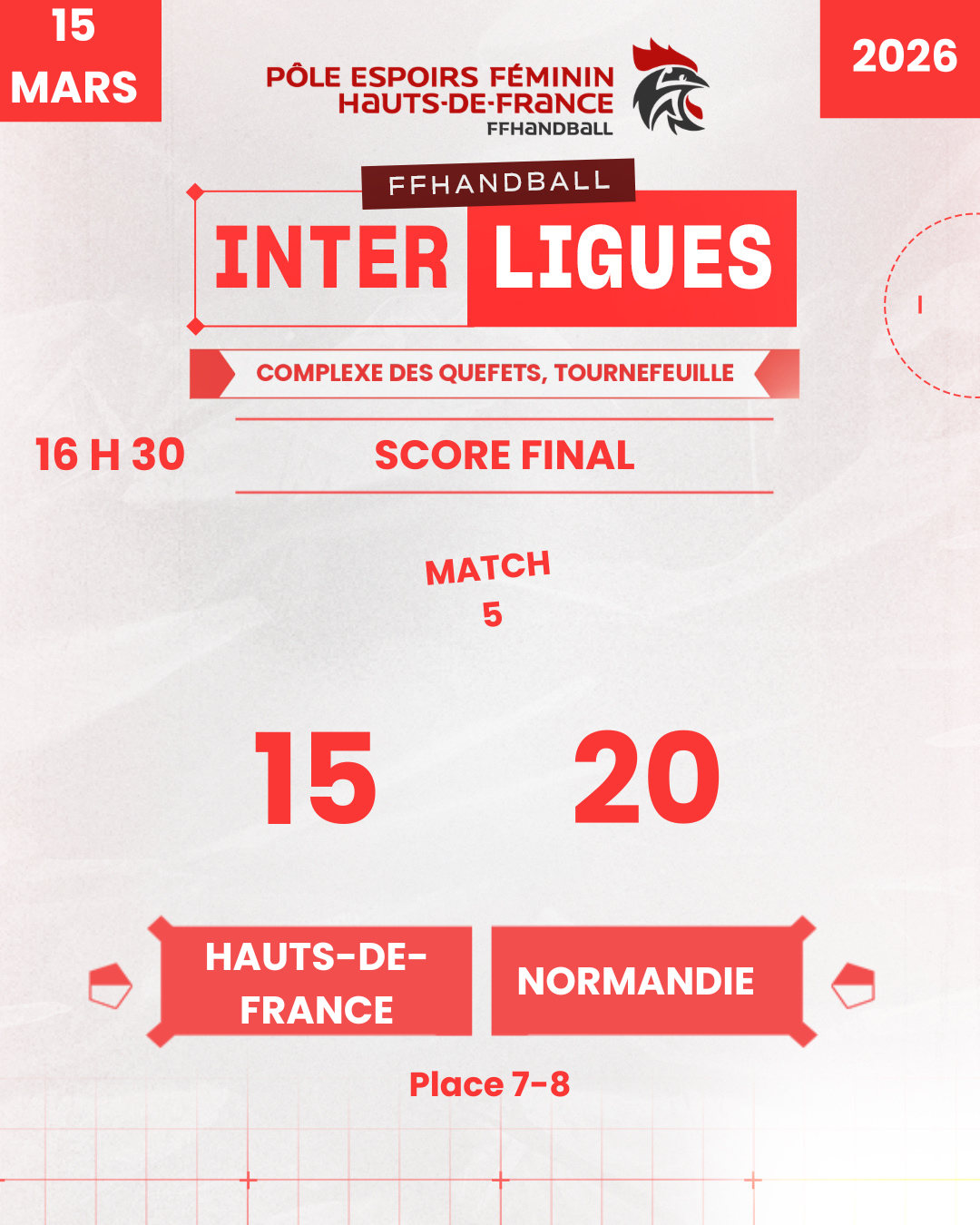 Sur ce dernier match des Interligues 2026, les Hauts-de-France ont perdu contre la Normandie et finissent à la 8ème place avec un bilan de 2 victoires – 3 défaites.