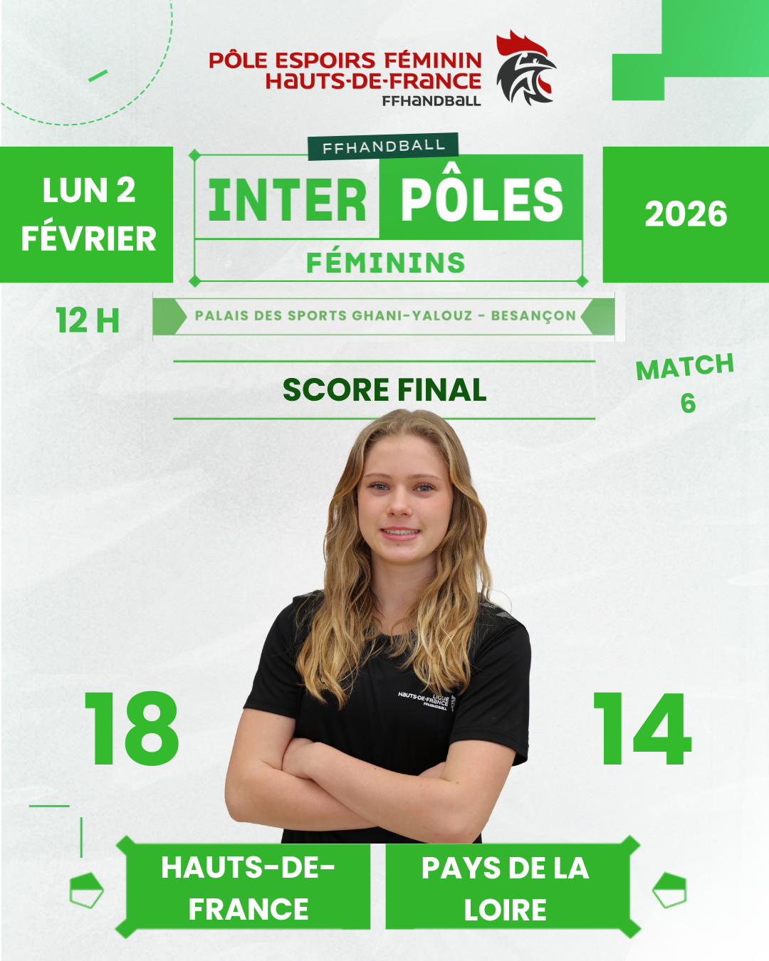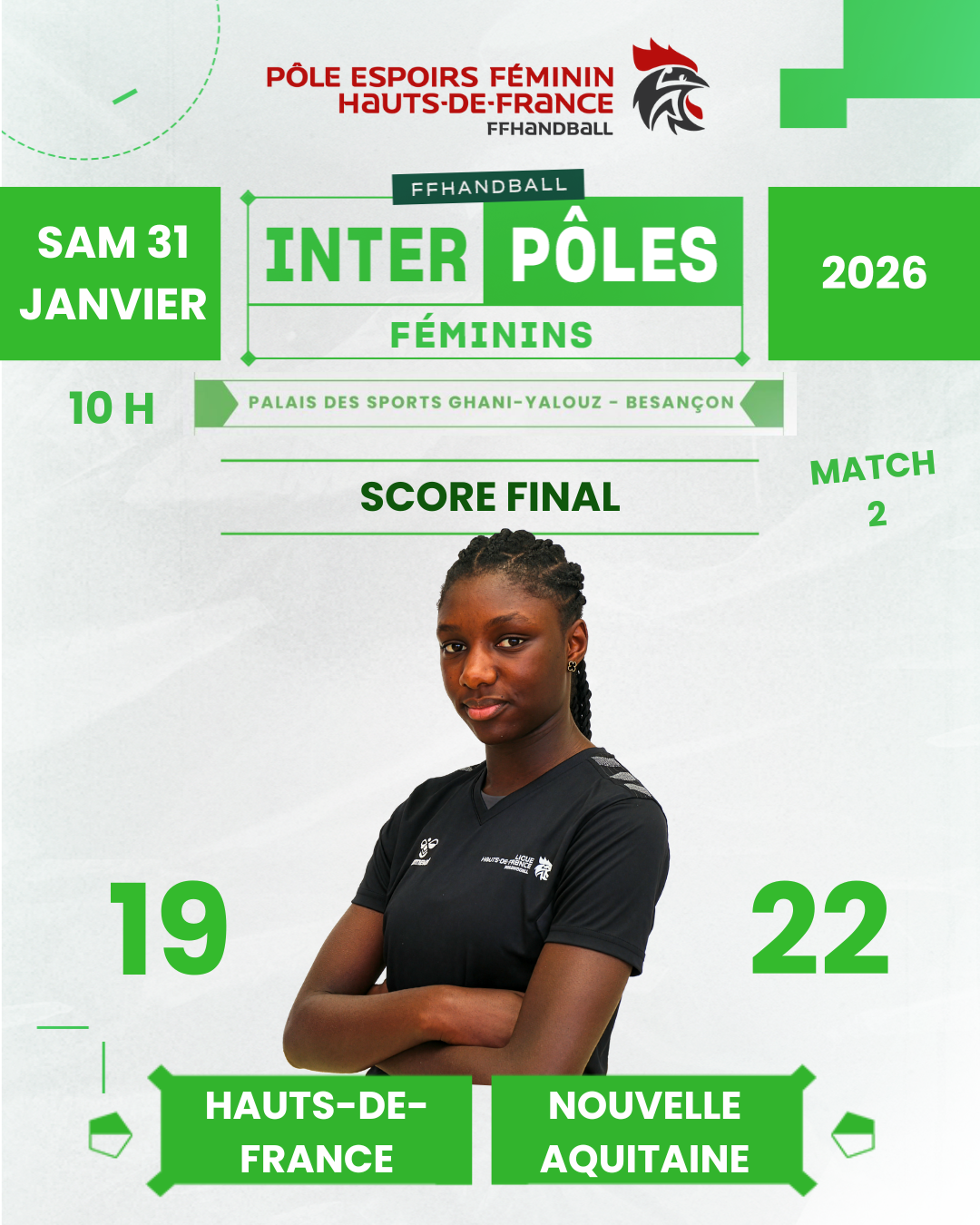 Avec un bilan de 2 victoires pour 4 défaites, Les Hauts-de-France ont donc terminé 5e de la poule 1, et ont joué la Ligue Nouvelle-Aquitaine Handball, qui s’est classé 5e de la poule 2 (3 victoires / 3 défaites).
