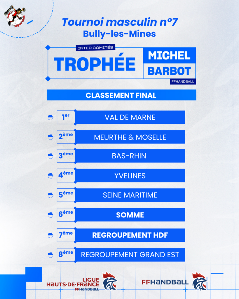 Le regroupement Hauts-de-France a obtenu la 5ème place, tandis que le comité Oise a fini 6ème.